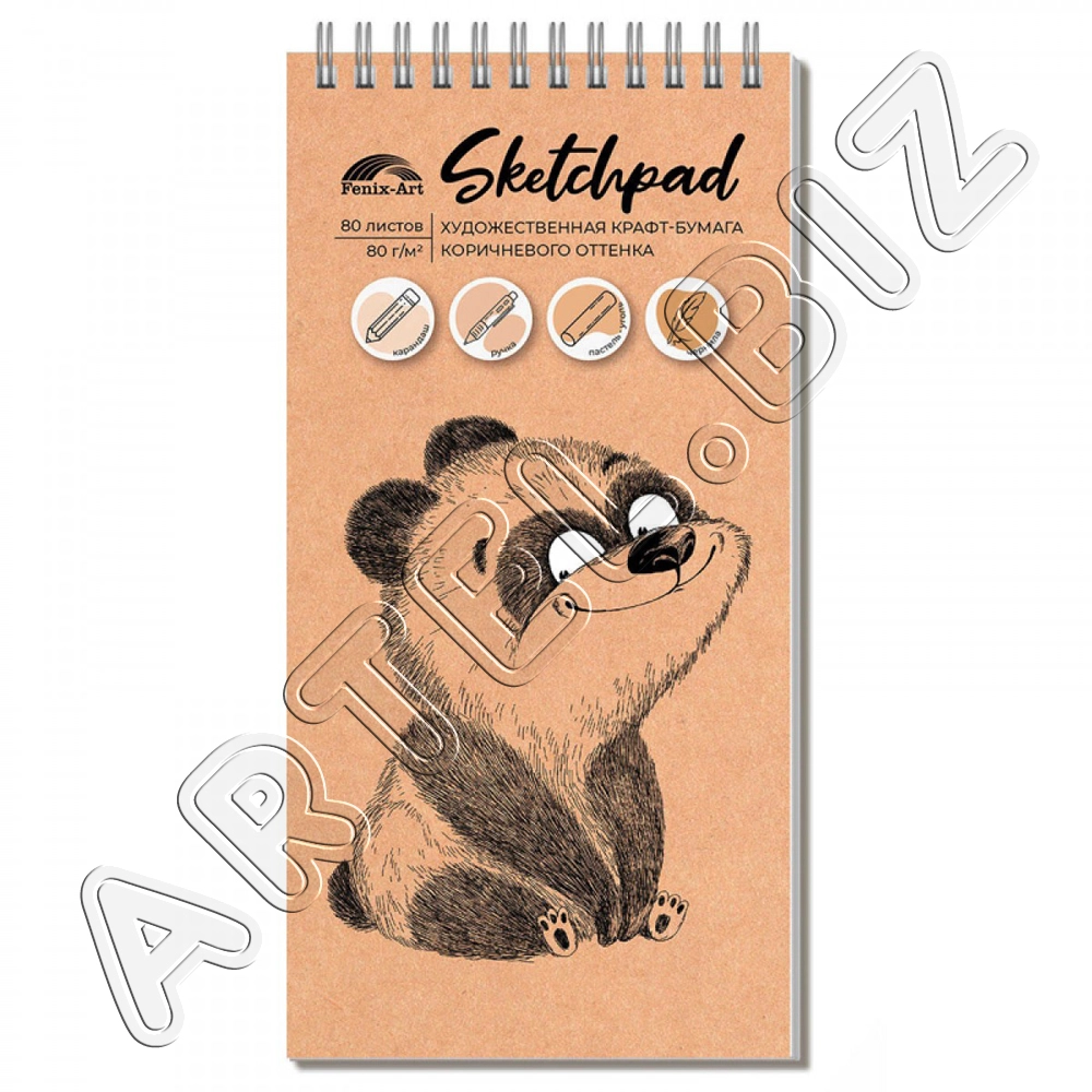 Скетчпад 105*210 гребень 80л б/лин. МИШКА крафт-бум. 80г/м2 арт.60582