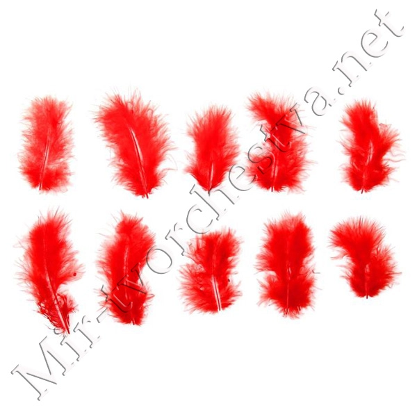 Набор перьев для декора 10 шт., размер 1 шт: 10x2 см, цвет красный