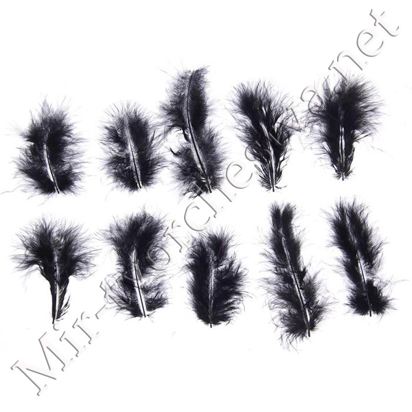 Набор перьев для декора 10 шт., размер 1 шт: 10x2 см, цвет чёрный