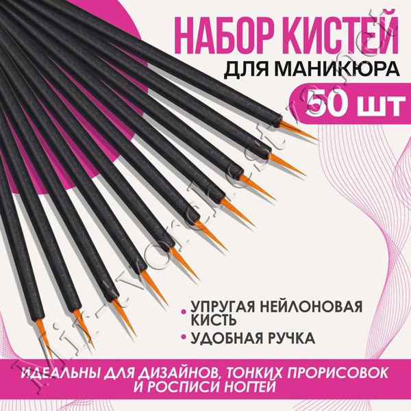 Набор кистей для дизайна ногтей, 50 шт, 10 см, цвет чёрный/коричневый