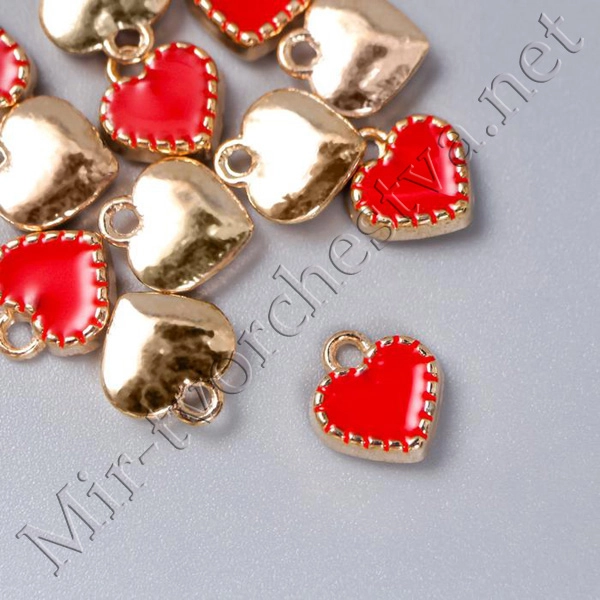 Декор для творчества металл, эмаль "Сердечко с кантиком" малиновый 1х1 см 7356040