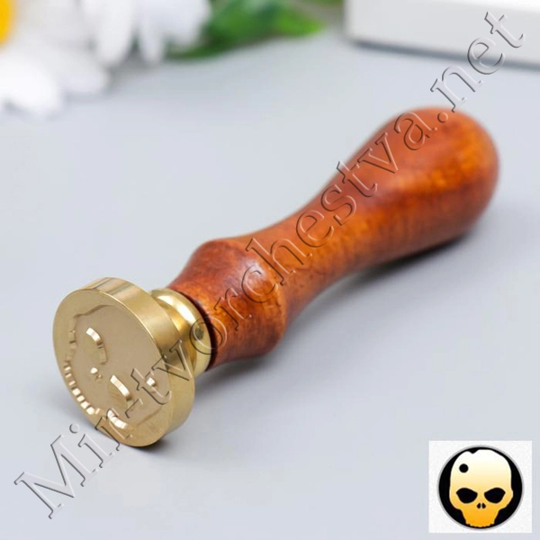 Печать для сургуча с деревянной ручкой "Череп с пулевым отверстием" 9х2,5х2,5 см 7423906