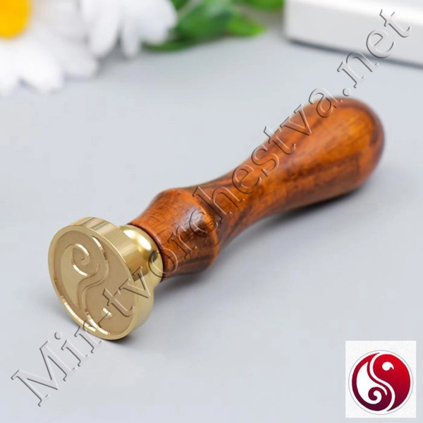 Печать для сургуча с деревянной ручкой "Инь-ян" 9х2,5х2,5 см 7423911