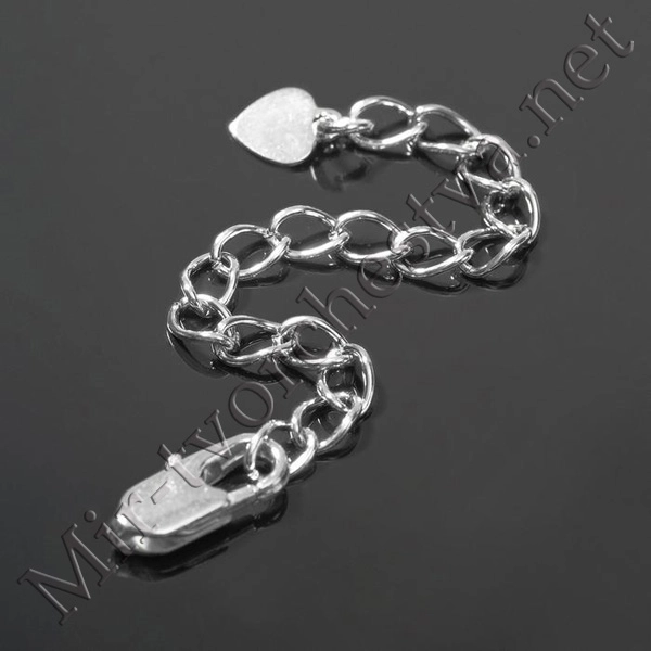 Замок-карабин (1,1*0,4см) с удлинителем 5,4см "Сердечко" малое (набор 3 шт), цвет серебро 7598422