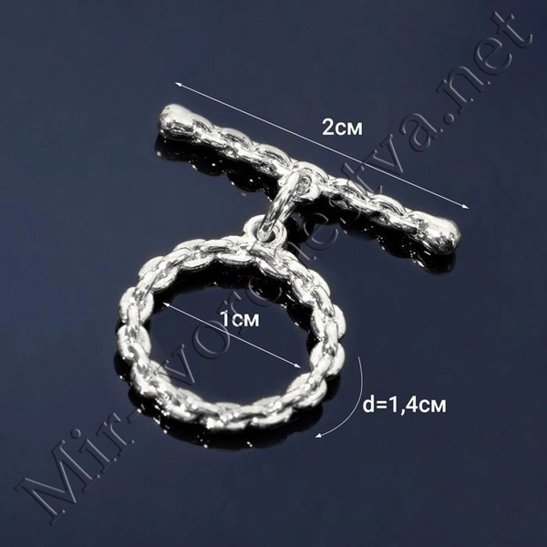 Замок родированный тоггл "Круг" звенья, цвет серебро