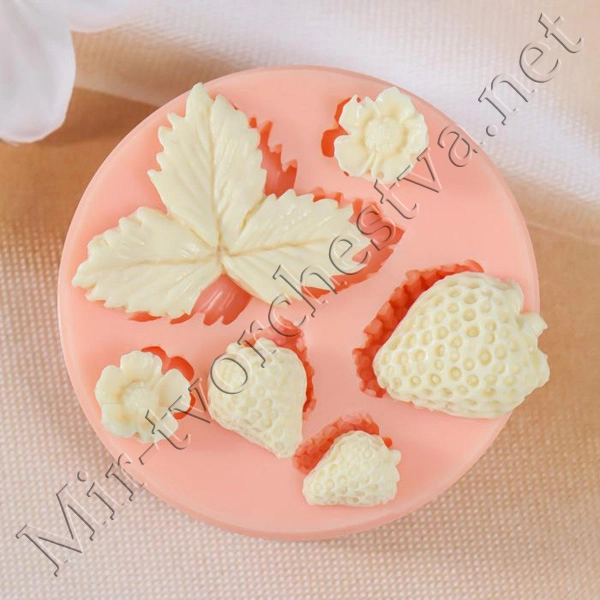 Молд силикон "Клубника с листочками" от1 см до 3,8 см МИКС 7778736