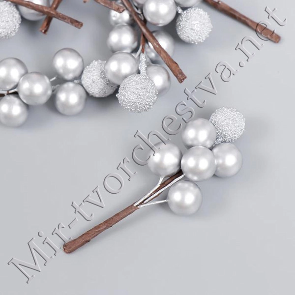 Декор "Веточка с шариками" серебро 4,5 см 7856880