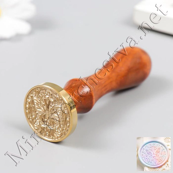 Печать для сургуча с деревянной ручкой "Бабочка в узорах" 3х3 см 7995616