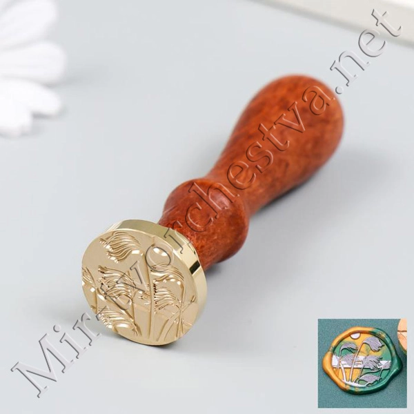 Печать для сургуча с деревянной ручкой "Цветы в узорах" 9х2,2х2,2 см 9352507