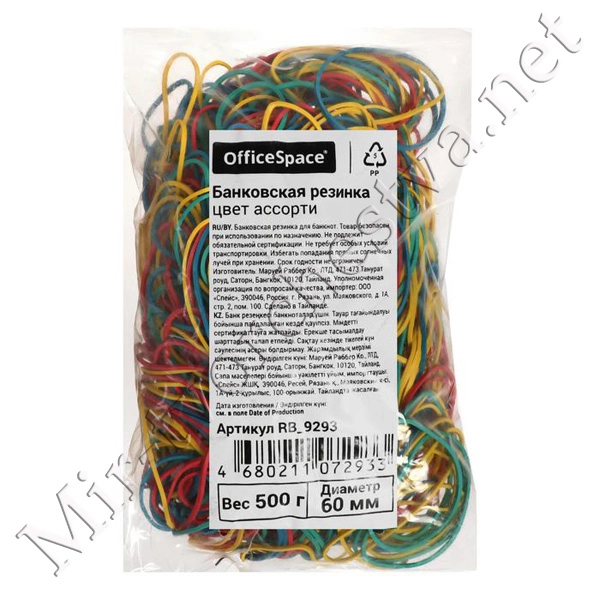 Банковская резинка 60мм 500г OfficeSpace, ассорти