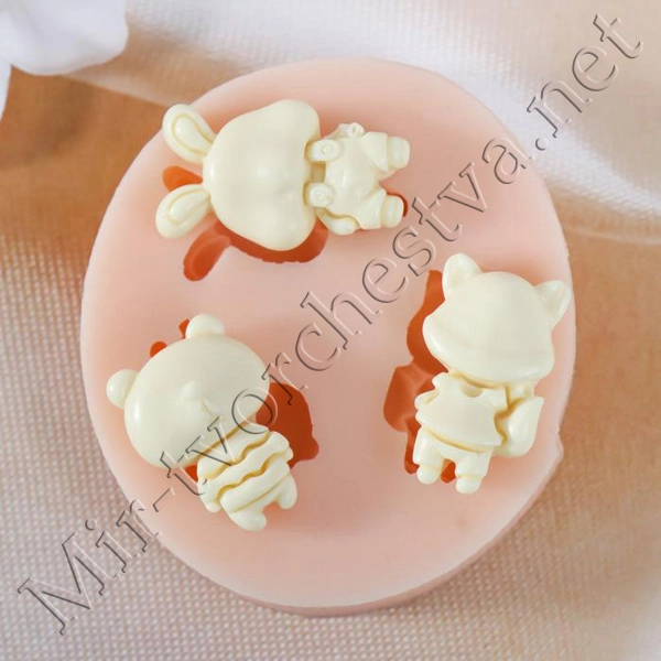 Молд "Мишки с букетом" изделия: 1,6х1,6х0,8, 1,6х1,6х0,8, 1,6х1,6х0,8 см