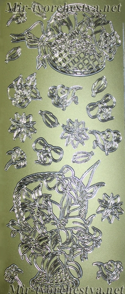 Наклейка 10х23см "Розы" ГОЛОГРАМН. СЕРЕБРО