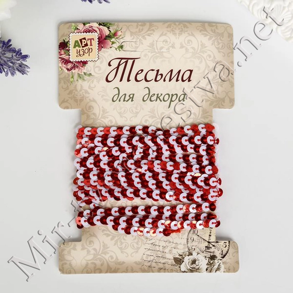Нить из пайеток голографическая "Красная и белая" намотка 3 метра 4146035