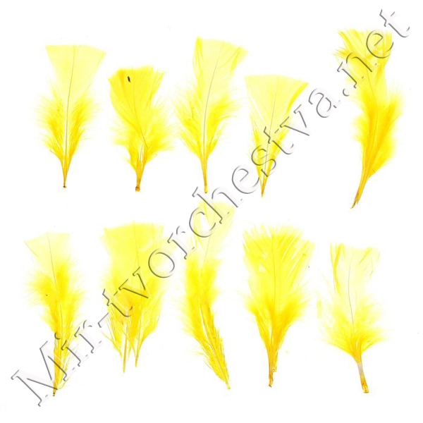 Набор перьев для декора 10 шт., размер 1 шт: 10x2 см, цвет жёлтый