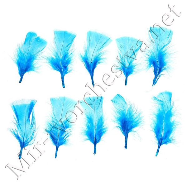 Набор перьев для декора 10 шт, размер 1 шт 10*4 цвет насыщенно голубой
