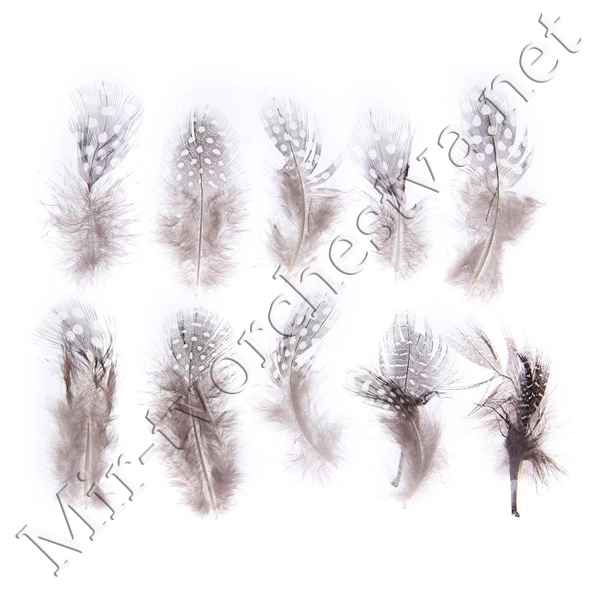 Набор перьев для декора 10 шт., размер 1 шт: 5x2 см, цвет коричневый с белым
