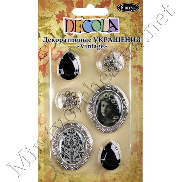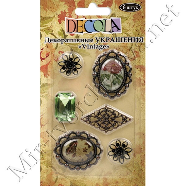 Украшения декоративные для скрапбукинга "Vintage", 6шт., №5344, Decola