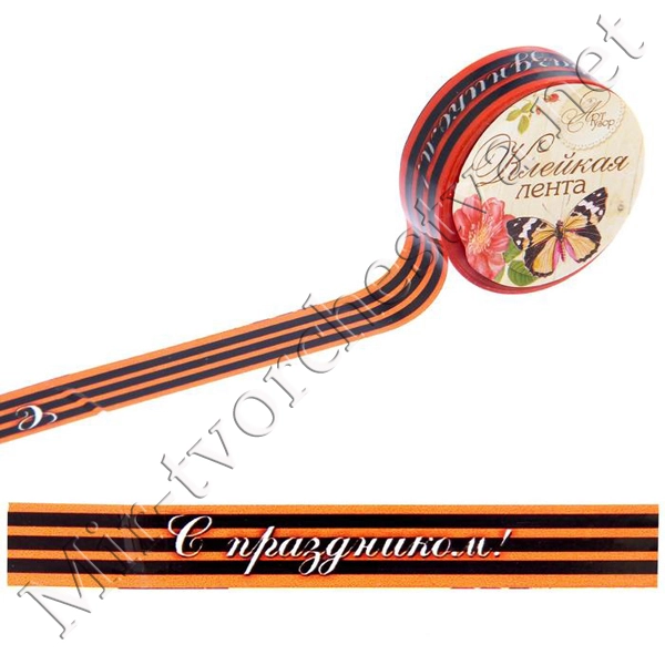 Скотч декоративный "С праздником", 1,5смх10м