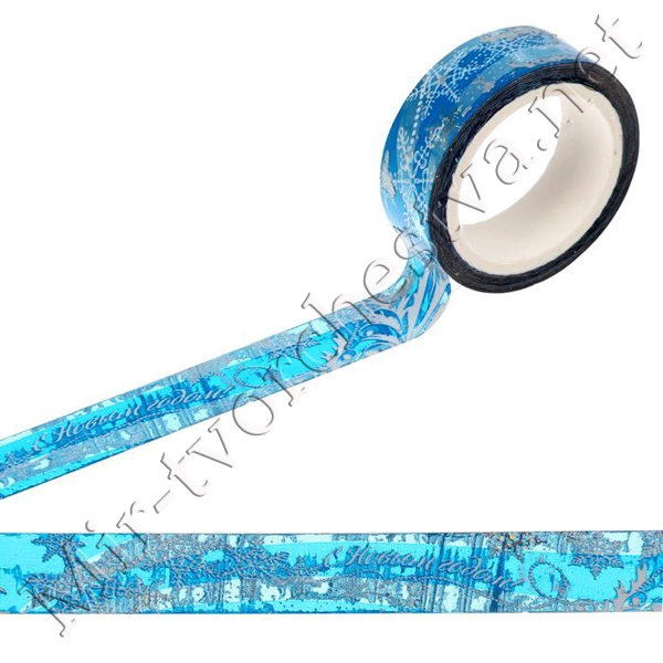 Декоративная клейкая лента голографическая "Морозные узоры", 1,5смх10м