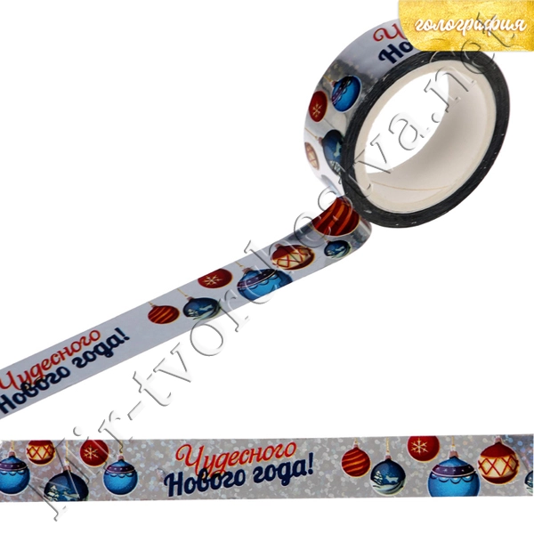 Декоративная клейкая лента голографическая "Чудесного Нового года", 1,5смх10м