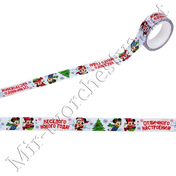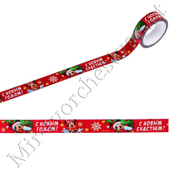 Декоративная клейкая лента голографическая "С Новым счастьем!": Микки Маус и друзья, 1,5х10м