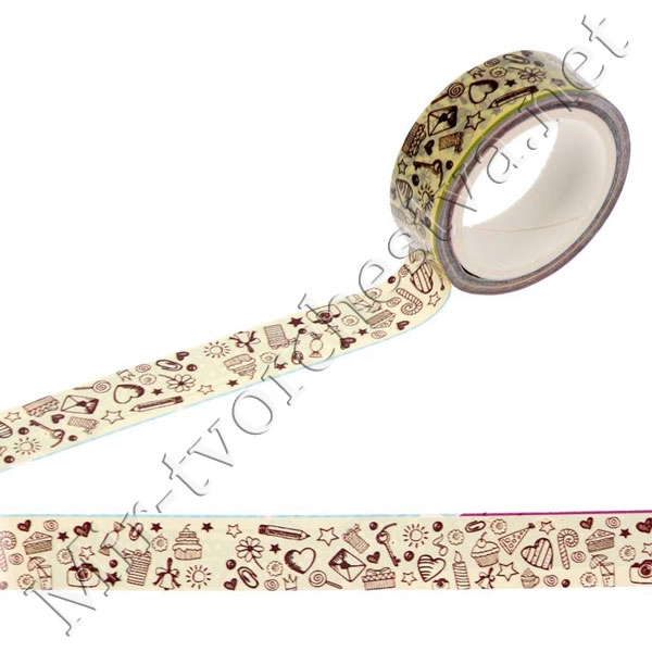 Скотч декоративный с рисунком, ширина 15х20мм, в ассортименте