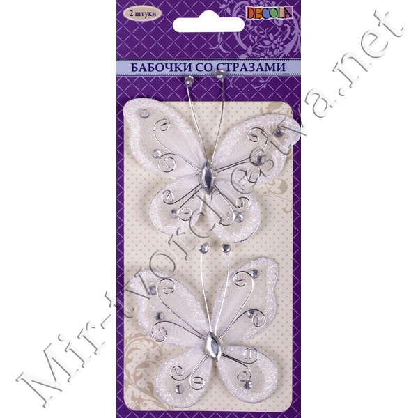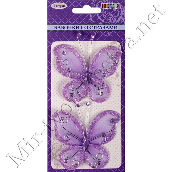 Бабочки со стразами, Фиолетовые, 2 шт., Decola