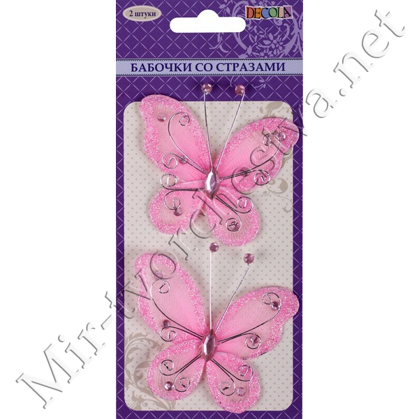 Бабочки со стразами, Розовые, 2 шт., Decola