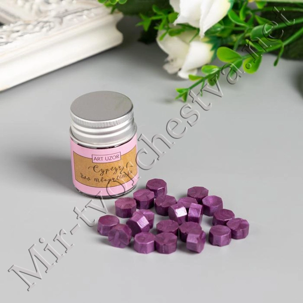 Сургуч в гранулах в баночке "Восьмигранник", (9г) 4.5x3x3см, цвет Фиолетовый пурпурный, Арт Узор