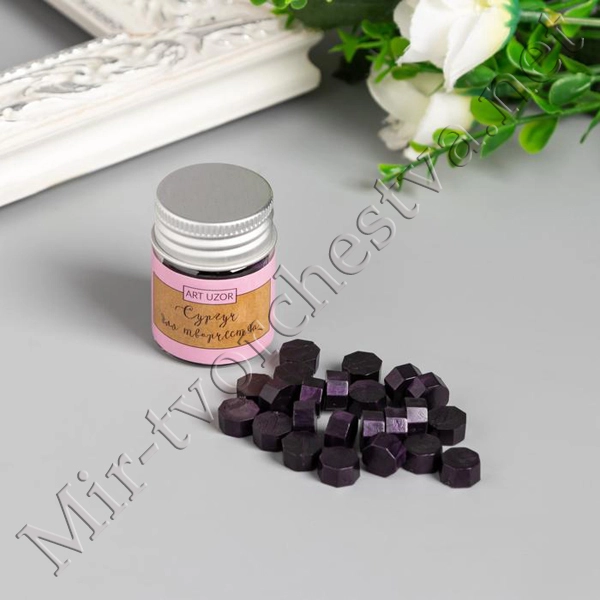 Сургуч в гранулах в баночке "Восьмигранник", (9г) 4.5x3x3см, цвет Ежевичный, Арт Узор
