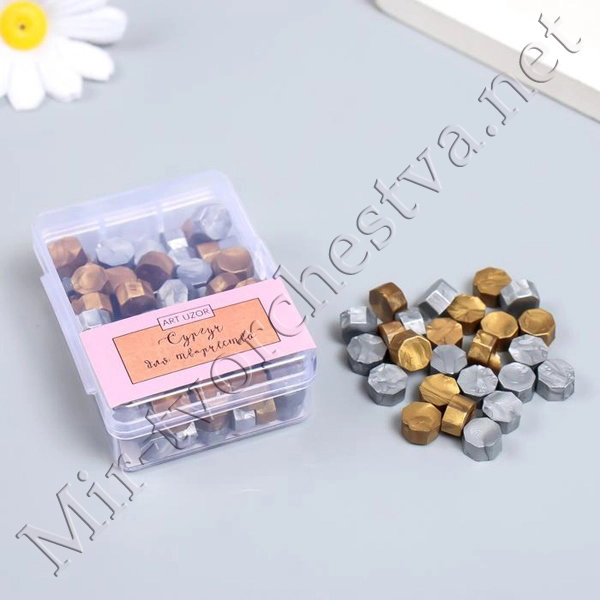 Сургуч в гранулах в коробочке "Восьмигранник", (35г) 2.4x5.5x7см, цвет Золото и Серебро, Арт Узор