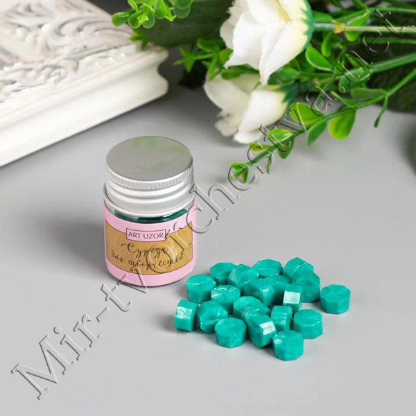 Сургуч в гранулах в баночке "Восьмигранник", (9г) 4.5x3x3см, цвет Бирюзовый, Арт Узор