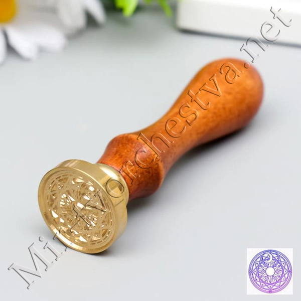 Печать для сургуча с деревянной ручкой "Солнце и месяц - геометрия" 9х3х3 см 5278928