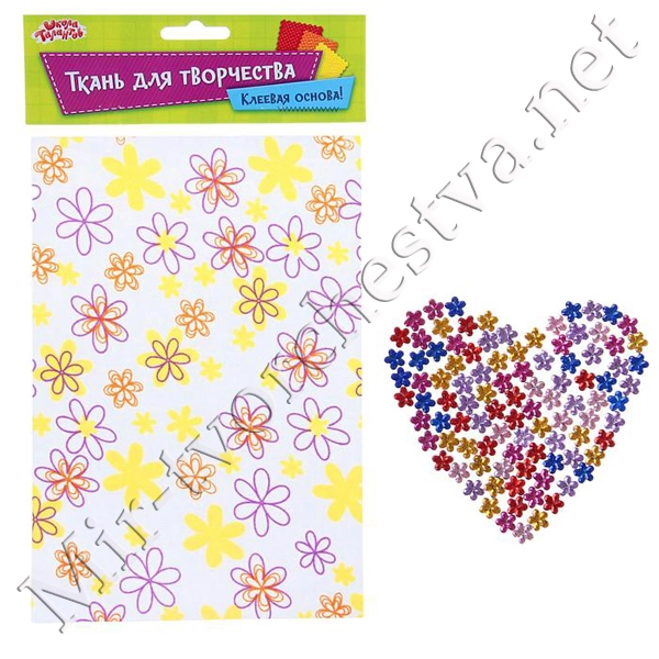 Ткань на клеевой основе для декорирования №1, размер листа 21*14,5см + стразы 5г