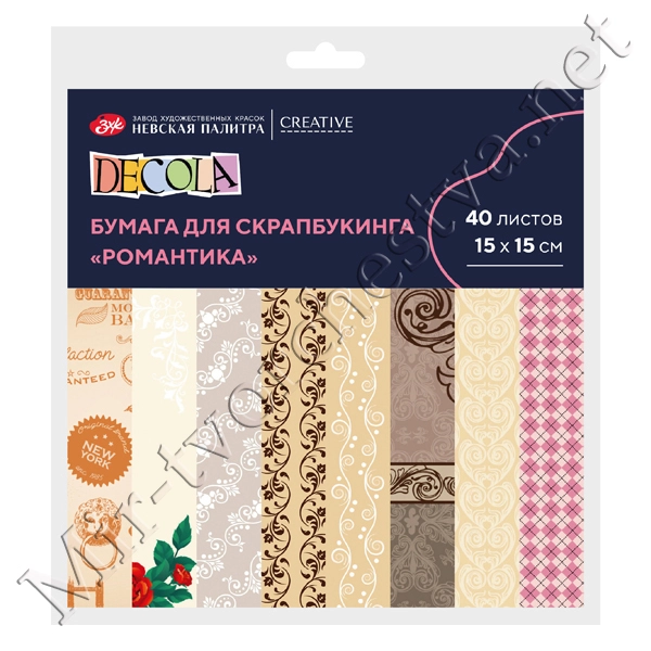 Набор бумаги для скрапбукинга "Романтика" 15x15см, 8 сюжетов, 40 листов, Decola