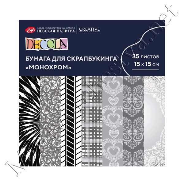 Набор бумаги для скрапбукинга "Монохром", 15x15см, 7 сюжетов, 35 листов, Decola