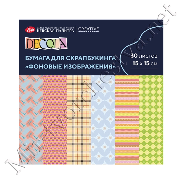 Набор бумаги для скрапбукинга "Фоновые изображения", 15x15см, 6 сюжетов, 30 листов, Decola