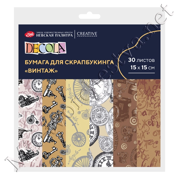 Набор бумаги для скрапбукинга "Винтаж", 15x15см, 6 сюжетов, 30 листов, Decola