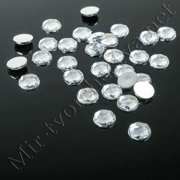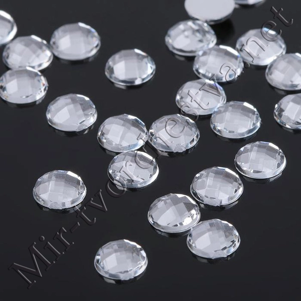 Стразы плоские круг, 14мм, (набор 10шт.), цвет Белый