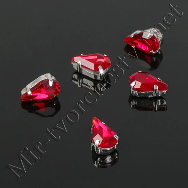 Стразы в цапах (набор 5шт.), 6x10мм, цвет Красный в Серебре
