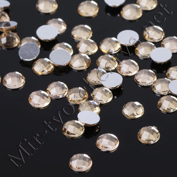Стразы плоские круг, 6мм, (набор 40шт.), цвет Золото
