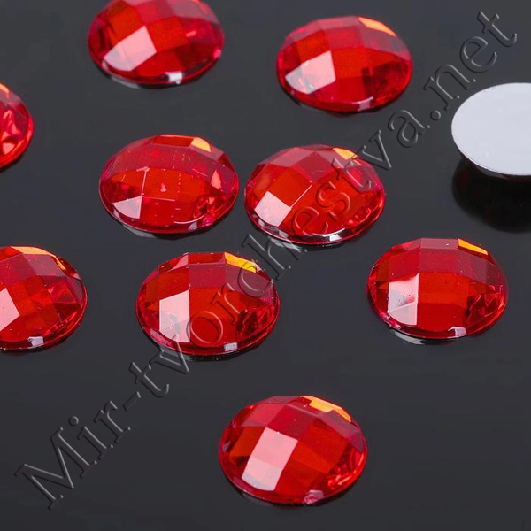Стразы плоские круг, 14мм, (набор 10шт.), цвет Красный