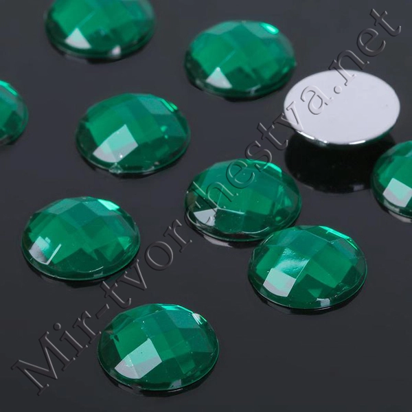 Стразы плоские круг, 14мм, (набор 10шт.), цвет Изумрудный