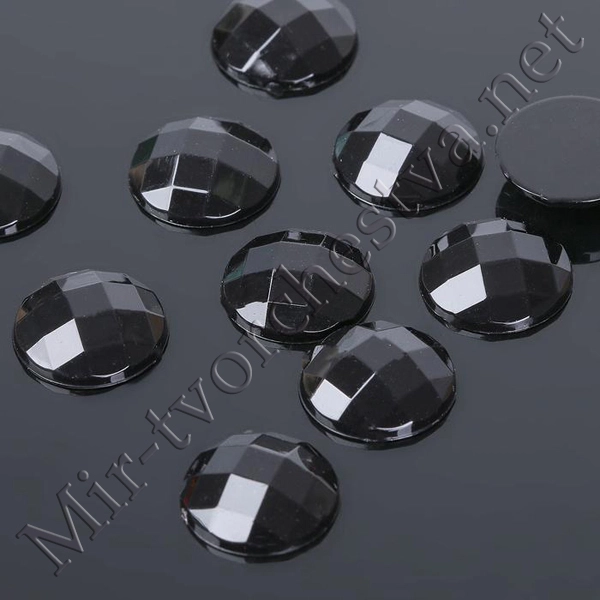 Стразы плоские круг, 14мм, (набор 10шт.), цвет Черный