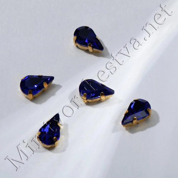 Стразы в цапах (набор 5шт.), 6x10мм, цвет Синий в Золоте