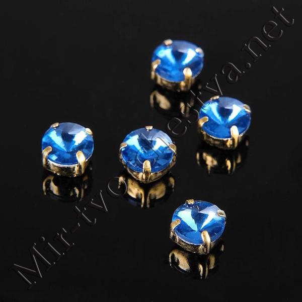 Стразы в цапах (набор 5шт.), 6x6мм, цвет Голубой в Золоте