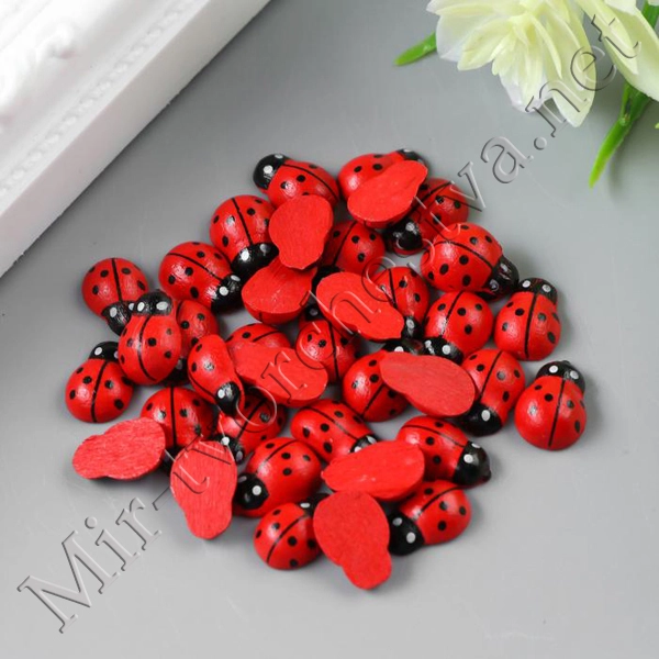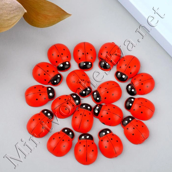 Набор декора для творчества дерево "Божьи коровки", (набор 15шт.) 1.3x2.5см