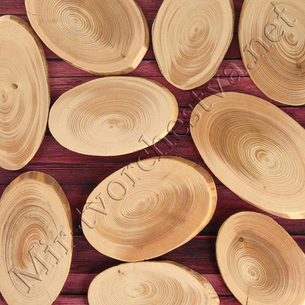 Спил дерева "Еловый", овальный, d=4-8 см, h=3,5 мм, набор 10 шт.