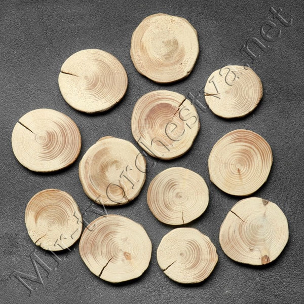 Спил "Еловый", круглый, d=4-7 см, h=5 мм, 10 шт.