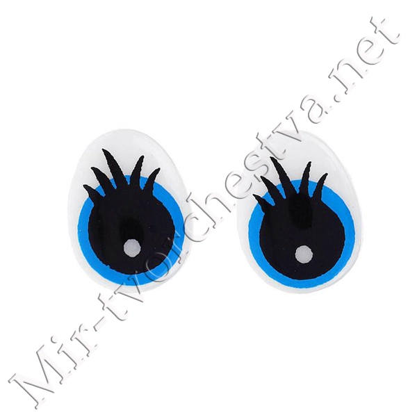Глаза моргающие с ресничками, полупрозрачные, круглые, пара, d:1см, цвет Голубой
